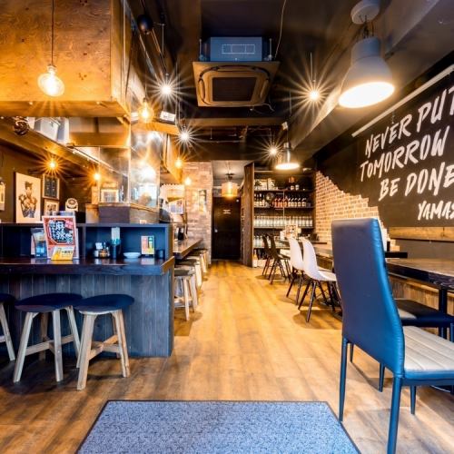 ブルックリンの雰囲気が漂うレンガ造り風の店内や、壁に飾られた様々なアート作品が特徴的なお店です♪また、お手洗いのドアが本棚になっていたりと遊び心満載!焼き台をご覧いただけるカウンター席を20席ご用意しておりますので、お一人様でのご利用やデートに最適です◎0時まで営業しておりますのでいつでも気軽にお越しください♪